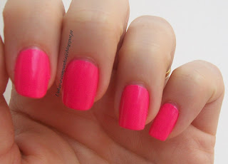 Bem e lá ando eu outra vez com os pots todos atrasados bahhhhhh , este verniz usei-o ainda no mês de Maio. Comprei-o já há bastante tempo num site estrangeiro e como o sol de vez em quando aparece apeteceu-me usar este tom neon. Apliquei duas camadas como é hábito que secaram rapidinho e nada de top coat. Este tom não foi fácil captar pois é mesmo um rosa tipo fluorescente, lindão  mesmo :) depois de secar fica tipo mais baço.